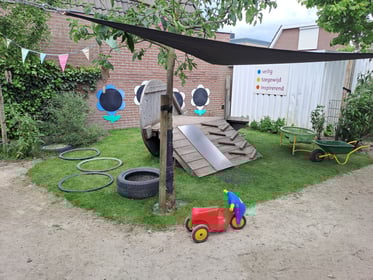 We also have our own outdoor area where children can play freely or take part in outdoor activities. We work with themes that match the children’s world of experience and encourage them to contribute their own ideas. In this way they learn to make choices, take others into account and discover their interests.