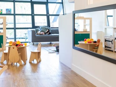 Our daycare center is specially designed for children aged 0 to 4 years. We provide a safe and stimulating environment where every child can develop at their own pace. The group spaces are bright and spacious, using natural materials and colors that radiate calmness. The direct connection to our large garden means that outdoor play is an integral part of our daily routine.