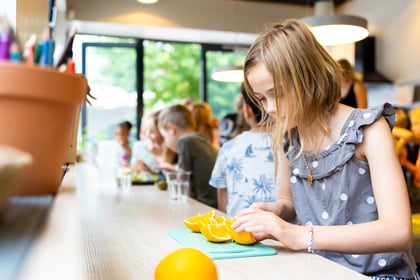 In our studio, children work with various materials such as screws, forks, feathers, clay and cardboard to create the most beautiful artworks. They come up with their own ideas and we teach them techniques to make their creations even better. For children who enjoy it, there is a spacious kitchen where we cook and bake healthy snacks together. Think of tasty treats for in between meals.