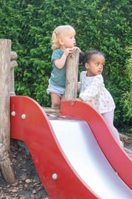 Our outdoor space is a real asset: a large, naturally designed playground behind the building where children can safely play and discover in a challenging yet protected environment. For the youngest ones, there's even a specially designed section of the garden. We believe it's important for children to go outside every day to enjoy fresh air and discover nature.