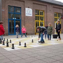 Our activity programme is varied and tailored to the age and interests of the children. We regularly organise creative workshops in our art studio, where children can draw, paint and craft. In our kitchen, we cook and bake healthy and delicious dishes together. There is also plenty of room for sports and games, both on our own playground and during trips to the nearby Goffertpark or the small forest next to the school. Sometimes we also visit the petting zoo.