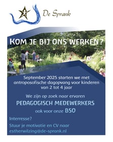 Our teachers are specially trained in anthroposophical pedagogy and guide the children with warm attention and respect for their individual developmental pace. We work with small groups and a fixed daily rhythm so that every child feels safe and secure. Early childhood education (VVE) is provided through a language and development programme that prepares children for primary school.