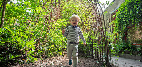 Autonomy is at the heart of our pedagogical vision. We give children space to discover new things on their own; through trial and error they build self-confidence. Every day we go outside in our large natural garden, whatever the weather. The garden features a willow tunnel, big sandpit, crawl tunnel and willow yurt where children can play endlessly with water, sand, branches and bikes, letting imagination and cooperation flourish.