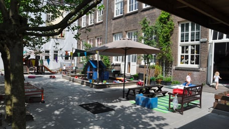 In the heart of Amsterdam, just a stone's throw from Prinseneiland, you will find De Kleine Prins daycare. We are located in a beautiful historic school building at Nieuwe Teertuinen 17A. De Kleine Prins is situated on the ground floor, where former classrooms have been transformed into atmospheric, bright group spaces. Artists work in studios on the upper floors, giving our location a special and creative atmosphere.