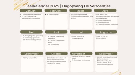 Our daycare is open from 7:00 AM to 7:00 PM and we offer both full and half-day care. We use a parent app to keep parents informed about their child's development and well-being. At KDV 'de Seizoentjes', we believe it's important that parents can bring their child without worry, knowing that their child is cared for with love and attention.Read more