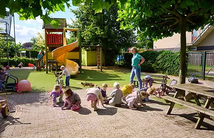Located at Berkstraat 91 in Oldenzaal, Kinderdagverblijf Het Speelkasteel is a welcoming childcare centre run by Stichting Humankind. We provide day-care for up to 89 children aged 0 to 4 years. Our horizontal groups – two baby-toddler rooms (0-2 yrs) on the ground floor and two pre-school rooms (2-4 yrs) on the first floor – ensure that every child receives care tailored to his or her developmental stage.