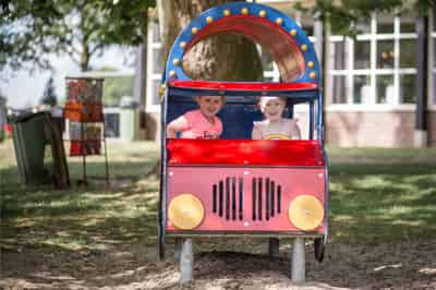 Spelen en leren gaan bij ons hand in hand. We bieden een veilige, leerrijke omgeving waarin kinderen de ruimte krijgen om hun talenten te ontdekken en in hun eigen tempo te ontwikkelen. De ruime, groene buitenruimte – met een speelplein dat steeds verder vergroend wordt – nodigt uit tot bewegen en natuurbeleving. Binnen beschikken we over lichte, warme groepsruimtes die zijn ingericht op de behoeften van de allerkleinsten.