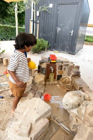When the weather permits, children get some fresh air outside. Time to release some physical energy! The outdoor area was completely renovated not long ago. We have really responded to the children's green experience: there is a play pit with wood chips and there are plenty of materials that invite play, such as a hill with a tree trunk that the children climb over. This really taps into the children's imagination, they play all kinds of games, build tree houses and play hide and seek.