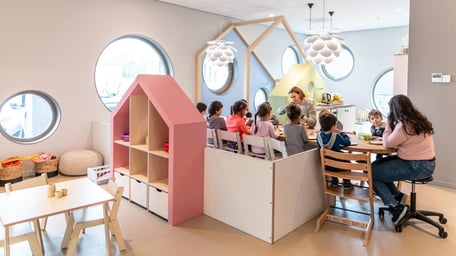 At KDV Rendierhof, we believe it's important that children feel safe and seen. We are the extension of home; despite the impressive appearance of the building, we offer cozy warmth in the groups. Reading together, playing together, and discovering together are central, because living together is the most important thing we can teach the children.