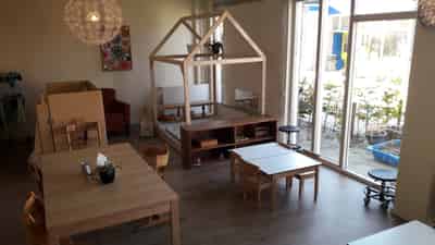 Ons kinderdagverblijf heeft plek voor 32 kinderen en is ingericht met een centrale keukentafel, waardoor er maximaal wordt aangesloten bij de gezinssituatie. Voor de allerkleinste kinderen is een apart huis beschikbaar waar zij rustig kunnen slapen terwijl de andere kinderen aan tafel een werkje kunnen doen. De pedagogisch medewerker-kindratio is hoger dan gebruikelijk, zodat er meer begeleiding beschikbaar is en de aandacht voor het individuele kind centraal staat.