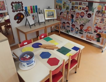 Our spacious group rooms are arranged with different corners such as a construction corner, home corner and reading corner. Children can play freely and choose activities that match their interests. We work extensively with natural materials and encourage creative expression through crafts and drawing. The garden of De Horizon is available for outdoor play, where children can run, cycle and explore nature. When weather permits, we play outside and use our picnic tables and sandpit.