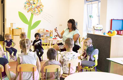 Our programme focuses on pre-school education (VE) and prepares toddlers for primary school. We use an accredited VE method that stimulates language, numeracy, social-emotional development and motor skills. The pedagogical staff set up the room with challenging themed corners and plenty of learning materials. Through stories, songs and play, toddlers practise new words and learn to play together. We actively involve parents in the theme through parent evenings and take-home materials, so that home and childcare reinforce each other.