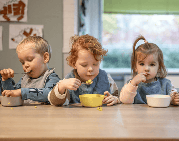 Babyspecialisten zorgen ervoor dat jouw baby zich snel thuis voelt. We volgen zoveel mogelijk het ritme van thuis. Elke middag eten we samen een verse, warme maaltijd. Zien eten, doet eten. Ook fijn: je kind heeft al een gezonde maaltijd op als je hem ophaalt.