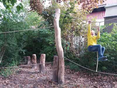 Als het weer het toelaat spelen we veel buiten. We beschikken over een veilige, groene speelplaats waar kinderen kunnen rennen, klimmen, schommelen en voetballen. Bij slecht weer maken we dankbaar gebruik van de gymzaal van de school. Daar organiseren we dan bewegingsactiviteiten zoals trefbal, dans of sport- en spelcircuit. De kinderen denken actief mee over het activiteitenaanbod; hun ideeën staan centraal.