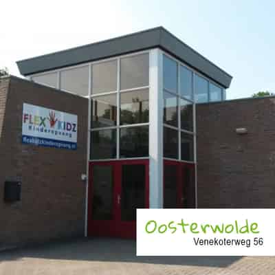 Welkom bij Flexkidz Kinderopvang aan de Venekoterweg 56 in Oosterwolde. Wij zijn een kleinschalige kinderopvangorganisatie met een persoonlijke benadering. Op onze locatie in Oosterwolde bieden wij buitenschoolse opvang (BSO) voor kinderen van 4 tot 12 jaar. Onze BSO is verdeeld over twee groepen met een totale capaciteit van 34 kinderen.