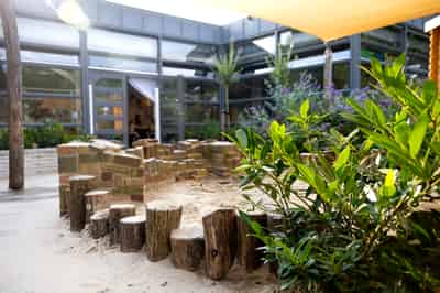 Voor buitenspel hebben we een speelplein aan zowel de voor- als de achterzijde van het gebouw. Daarnaast ligt op steenworp afstand het Rozenpark: een veilig en ruim speelveld dat onder begeleiding goed bereikbaar is. Alles is zo ingericht dat het aansluit bij de leeftijd van de kinderen.