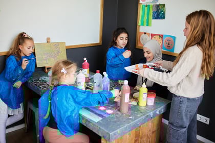 Creatieve ontwikkeling staat hoog in ons vaandel. Kinderen kunnen terecht in ons atelier, laboratorium én op ons podium om te dansen, muziek te maken of toneel te spelen. Daarnaast maken we gebruik van een uitdagende buitenruimte en de gymzaal. In vakanties organiseren we gave uitstapjes zoals een bezoek aan de boerderij of bioscoop, workshops in het laboratorium en dansworkshops. Samen met de kinderen bedenken we activiteiten, want wij zijn er écht voor de kinderen.