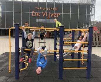 We werken nauw samen met Daltonschool De Vijver. De jongere kinderen worden uit de klas opgehaald door onze pedagogisch medewerkers, terwijl de oudere kinderen zelfstandig naar de opvang komen. We zijn verdeeld over twee lokalen binnen de school, waar we twee naschoolse opvanggroepen, een voorschoolse opvanggroep en het Eetcafé aanbieden.