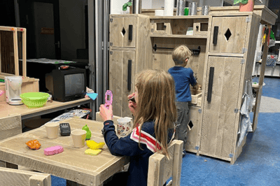 Onze locatie beschikt over een ruim schoolplein met speeltoestellen waar kinderen iedere dag buiten kunnen spelen. We hebben een grote buitenruimte met een moestuin waar kinderen leren over natuur en groei. In ons eigen lokaal hebben we een echte theaterkast met verkleedkleren. Soms verzinnen we samen een toneelstukje of een dansje, waarbij de kinderen hun creativiteit kunnen uiten.