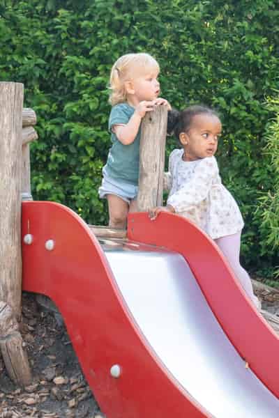Onze buitenruimte is een echte trots: een ruime, natuurlijk ingerichte speelplaats achter het gebouw waar kinderen veilig kunnen spelen en ontdekken in een uitdagende maar beschermde omgeving. Voor de allerkleinsten is er zelfs een speciaal ingericht gedeelte van de tuin. We vinden het belangrijk dat kinderen elke dag naar buiten kunnen om frisse lucht te happen en de natuur te ontdekken.