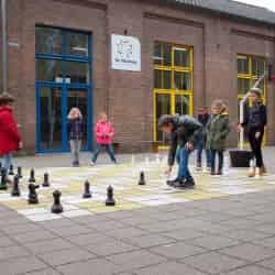 Ons activiteitenaanbod is afwisselend en afgestemd op de leeftijd en interesses van de kinderen. We organiseren regelmatig creatieve workshops in ons atelier, waar kinderen kunnen tekenen, schilderen en knutselen. In onze keuken koken en bakken we samen gezonde en lekkere gerechten. Daarnaast is er volop ruimte voor sport en spel, zowel op ons eigen plein als tijdens uitstapjes naar het Goffertpark of het bosje naast de school. Soms brengen we ook een bezoekje aan de kinderboerderij.
