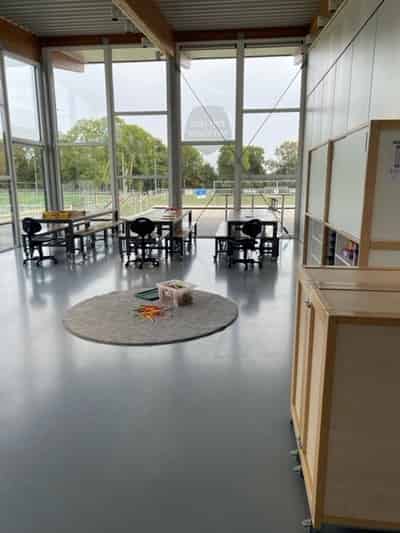 Binnen hebben we een lichte, ruime speelruimte ingericht met verschillende hoeken. Kinderen kunnen zich uitleven in de bouwhoek, ontspannen in de leeshoek of racen met auto's in de autohoek. Voor de creatieve kinderen is er volop ruimte voor knutselen en tekenen. Uniek aan onze locatie is dat we een drumstel hebben staan en een collega die drumles kan geven aan kinderen die hier interesse in hebben.