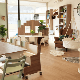 Bij ons is geen dag hetzelfde. Binnen wachten kasten vol spellen en bouwmaterialen, een eigen kook- en knutsel-lokaal en een atelier waar creativiteit de vrije loop krijgt. Onze Pedagogisch Medewerkers zorgen altijd voor een goede balans tussen ontspanning én ontwikkeling. Buiten kunnen kinderen ravotten op onze ruime, eigen speelplaats of – als ze oud genoeg zijn – in het aangrenzende Park De Driegang.