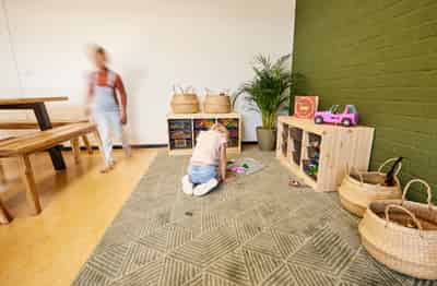 Bij ons is het ronduit genieten. We hebben twee ruime, lichte lokalen waar kinderen naar hartenlust kunnen spelen en ontdekken. In de bouwhoek liggen Legoblokken en houten blokken klaar voor de architecten van morgen. De huishoek met keukentje nodigt uit tot rollenspellen en sociale interactie. Onze knutselkast staat altijd open: kinderen kiezen zelf hun materialen en gaan aan de slag. Die keuzevrijheid vinden wij belangrijk, want zo leren ze zelfstandig beslissingen nemen.