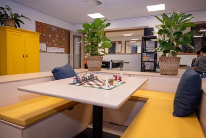 Onze ruimtes zijn bewust uitdagend ingedeeld. Voor de oudere kinderen hebben we een huiskamer met fijne banken en zitjes bij het raam, waar ze kunnen chillen met een boek of gezellig kletsen met vrienden. In het atelier kunnen kinderen niet alleen knutselen, maar ook aan de slag met houtbewerking en andere gereedschappen. Onze volledig uitgeruste keuken nodigt uit om samen gezonde gerechten te bereiden; koken en bakken zijn dan ook geliefde activiteiten.