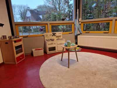 De groepsruimtes van ons kinderdagverblijf zijn licht, ruim en ingericht op de belevingswereld van jonge kinderen. We hanteren een huiselijke sfeer waarin veiligheid, rust en regelmaat centraal staan. Elke baby en peuter krijgt de ruimte om op eigen tempo te ontdekken, spelen en groeien. Onze pedagogisch medewerkers volgen de ontwikkeling van uw kind nauwgezet en stemmen activiteiten en verzorging af op individuele behoeften.
