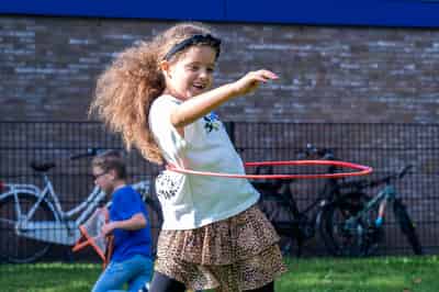 De locatie beschikt over een ruime tuin en een sportzaal, waardoor er volop mogelijkheden zijn om te bewegen. We vinden het belangrijk dat kinderen na een schooldag kunnen ontspannen en hun energie kwijt kunnen. Tegelijkertijd bieden we rustmomenten aan voor wie dat nodig heeft. Zo creëren wij een veilige en huiselijke sfeer waarin elk kind zich thuis voelt.