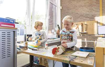 We staan dicht bij de natuur en gaan daarom elke dag naar buiten. Na schooltijd kunnen kinderen meedoen aan ons knutselatelier of deelnemen aan sportactiviteiten die we samen met een lokale sportvereniging organiseren. Ook bieden wij voorschoolse opvang (VSO) aan op maandag, dinsdag, donderdag en vrijdag van 07:30 tot 08:30 uur.
