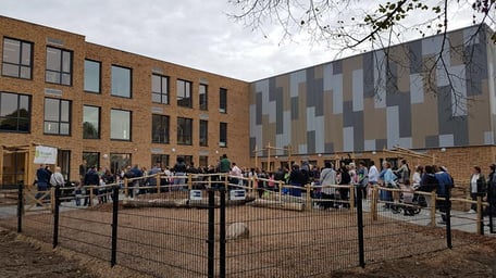 Ons nieuwe gebouw is duurzaam en speels vormgegeven, afgestemd op robuust metselwerk. Elk lokaal is voorzien van een vraaggestuurd ventilatiesysteem dat ventileert op basis van CO2, waardoor we een gezond binnenklimaat waarborgen. De centrale hal biedt ruimte voor ontmoeting en heeft aan de lokaalzijden scheidingswanden met geïntegreerde garderobes. Op hoedenplanken kunnen de kinderen hun werkstukjes tentoonstellen.
