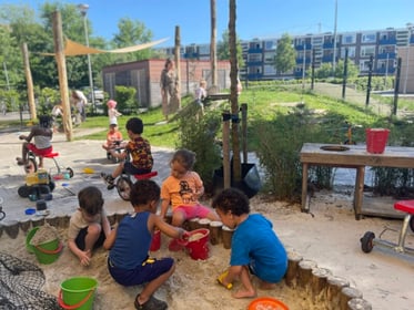 Bij ons staan geborgenheid, liefdevolle aandacht en ontwikkelingsgericht spelen centraal. De baby’s slapen rustig in twee aparte slaapkamers met veilige bedjes en vloerverwarming. Voor de dreumesen en peuters is er een zonnige ontdektuin met waterpomp, zandbak, glijbaan én een veilige grondbox waar de allerkleinsten vrij kunnen bewegen. We werken met het VVE-programma Piramide, waarmee we taal, motoriek en sociale vaardigheden op speelse wijze stimuleren. Dagelijks maken we uitstapjes naar de kinderboerderij en verkennen we samen het schoolplein van De Tamarisk.