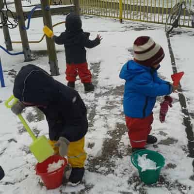 Onze dagen zijn gevuld met muziek, creatieve activiteiten en dagelijks buiten spelen. De kinderen mogen van alles uitproberen en ontdekken. We maken veel plezier samen en ja, vies worden hoort erbij! De activiteiten passen we altijd aan het niveau en de belangstelling van de kinderen aan, waardoor ieder kind zich uitgedaagd voelt op zijn of haar eigen tempo.