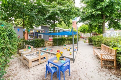 Onze fantastische tuin is een ware speelparadijs waar kinderen naar hartenlust kunnen spelen. Voor de allerkleinsten hebben we buitenpakken en voor de grotere kinderen mooie laarzen, zodat we ook bij minder mooi weer buiten kunnen spelen. De allerkleinsten kunnen zelfs lekker buiten slapen in onze speciale slaaphuisjes. We geloven in het motto: "Slecht weer bestaat niet! Slechte kleding wel."