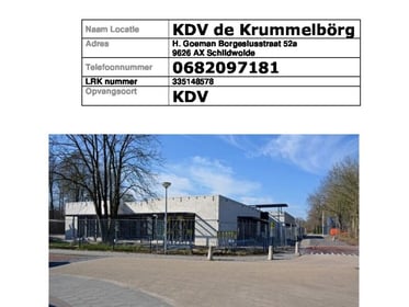 Heb je een vraag over KDV Schildwolde de Krummelborg? Stel je vraag en andere ouders of de opvang zelf kunnen antwoorden.
