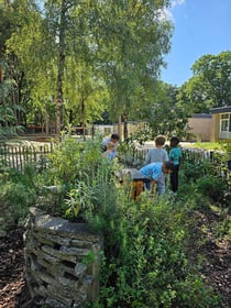 Buiten beschikken we over een natuurlijke tuin met zandbak, waterbak, klimtoestellen en een moestuin. Hier leren kinderen groente en fruit kweken, ontdekken ze insecten en ervaren ze de seizoenen. We werken met VVE-programma’s (voorschoolse educatie) die taal, rekenen en sociale vaardigheden spelenderwijs stimuleren. Dagelijks lezen we voor, zingen we liedjes en maken we tijd voor knutselen en bouwen.