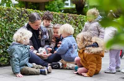 Duurzaamheid en natuur staan centraal in onze groene kinderopvang. Kinderen zaaien zelf in onze kweekbakken en verzorgen de plantjes. Als de groenten rijp zijn, plukken, proeven en eten we ze samen. Ook verzorgen we onze eigen krielkippetjes: samen voeren, aaien en elke dag kijken of er eieren zijn. De eitjes koken of bakken we en eten we gezamenlijk tijdens de lunch.