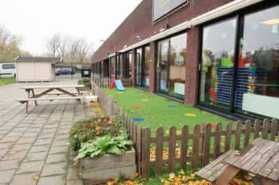 Onze locatie beschikt over grote, lichte ruimtes met uitdagende speelhoeken waar kinderen zich kunnen uitleven. De lange open gang verbindt de groepen met elkaar en creëert een open en vrije sfeer. Alle groepen kijken uit op een prachtige, grote buitenspeelplaats waar kinderen heerlijk kunnen spelen.