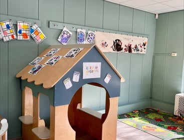 De ruimte is ontworpen met grote ramen die veel zonlicht binnenlaten en stijgerhouten meubels die een warme, huiselijke sfeer creëren. Voor de allerkleinsten is er een aparte babyhoek ingericht, terwijl de explorerende peuters kunnen spelen met ontwikkelingsgericht materiaal en een eigen huishoek. De centrale hal fungeert als multifunctionele ontmoetingsruimte voor alle leeftijden.
