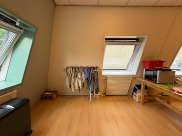 Onze locatie beschikt over drie mooie opvangruimtes: een gezellige groepsruimte met zithoek en eettafel, een speciaal kinderkookcafé waar kinderen zelf kunnen koken en bakken, en een chillruimte om even tot rust te komen. We delen onze buitenruimte met het KDV en hebben een prachtig aangepast buitenterrein met onder andere een voetbalkooi en een uitdagend klimtoestel. Er is ook rijdend materiaal aanwezig voor nog meer speelplezier.