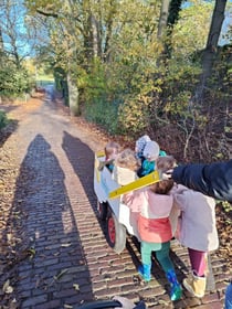 We vinden het belangrijk dat kinderen de wereld om hen heen ontdekken. Zo vaak mogelijk gaan we met de bolderwagen op pad om de naaste omgeving te verkennen. We bezoeken de kinderboerderij, de hei of een speeltuintje in de buurt. Deze uitstapjes dragen bij aan de ontwikkeling van de kinderen en maken de opvangdag extra afwisselend.