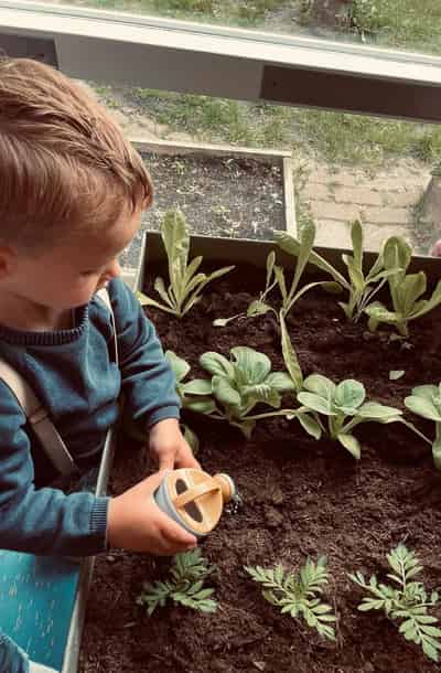 Binnen beschikken we over ruime speel- en ontdeklocaties, en er zijn aparte, afgeschermde slaapruimtes waar kinderen die dat nodig hebben rustig kunnen slapen. Buiten is er een volledig omheinde speelplaats waar kinderen veilig kunnen spelen en bewegen. Dagelijks maken we gebruik van onze buitenruimte; buitenspelen is een vast onderdeel van ons dagritme. Daarnaast brengen we regelmatig een bezoekje aan de dieren op onze boerderij, waardoor de kinderen op een natuurlijke manier kennismaken met het boerenleven.