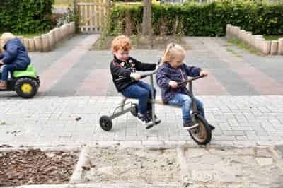 Binnen is er volop ruimte om te spelen in uitdagende speelhoeken. Kinderen kunnen hier knutselen, wat niet alleen enorm leuk is maar ook goed werkt voor de fijne motoriek. Daarnaast nodigen we ze uit om zoveel mogelijk buiten te zijn. Onze groene tuin biedt een veilige plek om samen met vriendjes te ontdekken, te rennen en te spelen. Geen dag is hetzelfde; we volgen de nieuwsgierigheid van de kinderen en bieden activiteiten aan die aansluiten bij hun belevingswereld.
