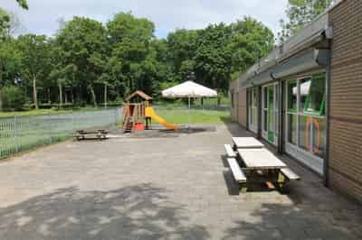 Onze locatie beschikt over een grote speelhal die favoriet is bij de kinderen. Deze ruimte biedt volop mogelijkheden voor beweging en spel, afgestemd op de verschillende leeftijden. Voor de allerkleinsten hebben we een aparte babyruimte waar rust en individuele aandacht centraal staan. Onze tuin is een waar paradijs voor kinderen: ze kunnen er fietsen, klimmen en spelen in de zandbak. De baby's hebben zelfs een eigen grasveldje waar ze veilig kunnen ravotten.