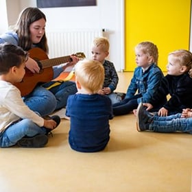 Wij werken thematisch. Elke periode staat in het teken van een herkenbaar onderwerp zoals ‘zomer’. We lezen boekjes, zingen liedjes, knutselen en bakken samen zandtaartjes. Spelen is bij ons leren: we bieden veel vrij speelmateriaal aan – van wasknijpers en kastanjes tot kartonnen dozen – zodat uw kind zijn fantasie en creativiteit kan ontwikkelen. Tegelijk observeren we wat uw kind boeiend vindt en spelen daarop in.