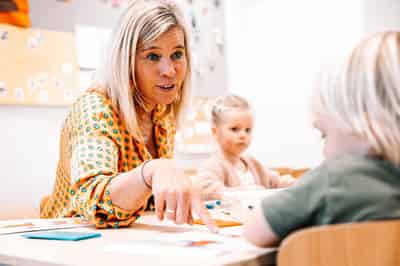 Elke dag start met kletsen in de kring, tellen, (voor)lezen en samen spelen. We werken aan de hand van speelse thema’s op een creatieve manier aan de ontwikkeling van je peuter. Spelenderwijs bereiden we ze voor op de basisschool. Onze pedagogisch medewerkers zorgen dat er van alles te doen is: verkleden, bouwen, gymmen, lezen en muziek maken. Zo sluiten we aan bij de ontwikkelingsfases van je kind. Peuters zijn nieuwsgierig; dat is het perfecte moment om op een speelse manier kennis te maken met kleuren, vormen en taal.