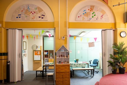 Onze pedagogische aanpak is gebaseerd op het 'Pedagogisch Hart' van Kind&co ludens. Dit betekent dat wij werken vanuit vier kernwaarden: kinderen moeten zich fijn voelen en plezier maken, ze krijgen vertrouwen en ruimte om te groeien en ontdekken, we bieden een rijke en inspirerende omgeving, en we vormen samen een hechte gemeenschap. Deze visie vertaalt zich in concrete activiteiten zoals knutselen, sporten in de gymzaal, kleuren, uitrusten in rustige hoeken, en natuurlijk het bespelen van ons podium.