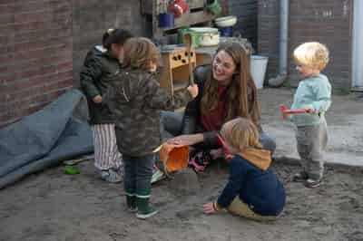 We werken in horizontale groepen, waarbij kinderen met leeftijdsgenootjes spelen en ontwikkelen. De ruime natuurtuin biedt volop ruimte om buiten te spelen, de natuur te ontdekken en de zintuigen te prikkelen. Duurzaamheid en bewustzijn voor onze omgeving maken vanzelfsprekend onderdeel uit van onze dagelijkse activiteiten.